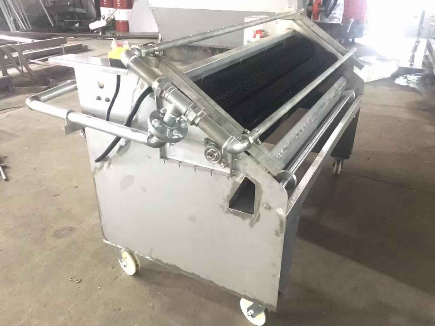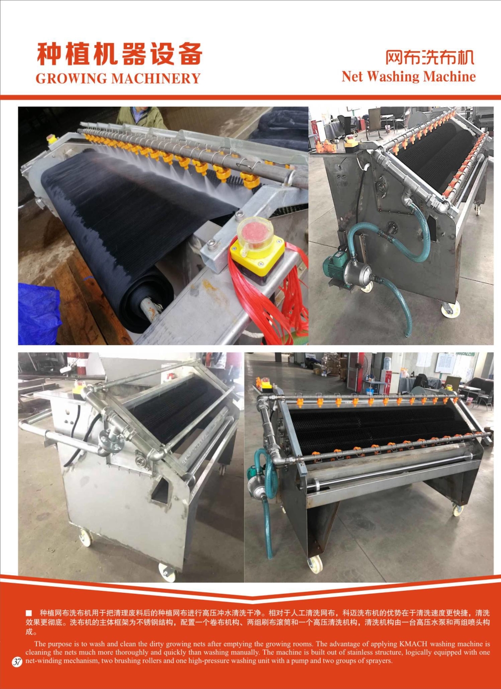 科迈种植网布洗布机用于把清理废料后的种植网布进行高压冲水清洗干净。相对于人工清洗网布,科迈洗布机的优势在于清洗速度更快捷,清洗效果更彻底。洗布机的主体框架为不锈钢结构,配置一个卷布机构、两组刷布滚筒和一个高压清洗机构,清洗机构由一台高压水泵和两组喷头构成。
