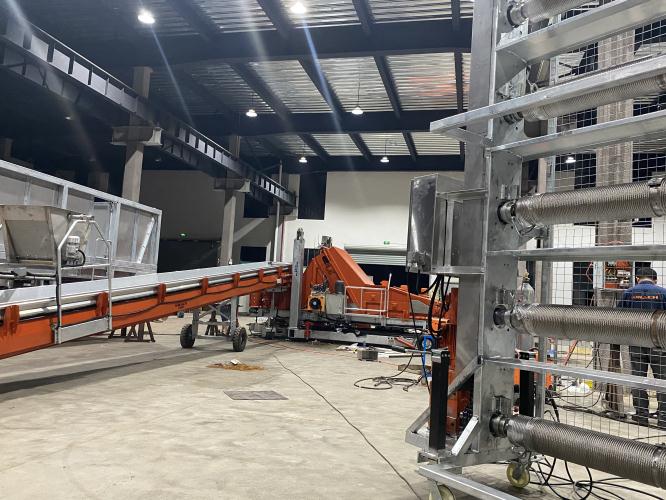 P29-30 Head Filling System.jpgAccording to the specific requirement of filling Phase II compost and Phase III compost and the operating habits of farm operators, we have developed durable,precise and efficient growing room filling systems.Phase II filling system consists of one filling machine,one conveyor, one pulling winch(single-roller or six-roller), one spawning unit,and one casing cart and can fill compost first then casing soil onto the shelving. Phase III filling system consists of one filling machine,one compost conveyor, one casing conveyor,one pulling winch(single-roller or six-roller), one compost hopper and one casing hopper, and can fill compost and casing soil simultaneously.