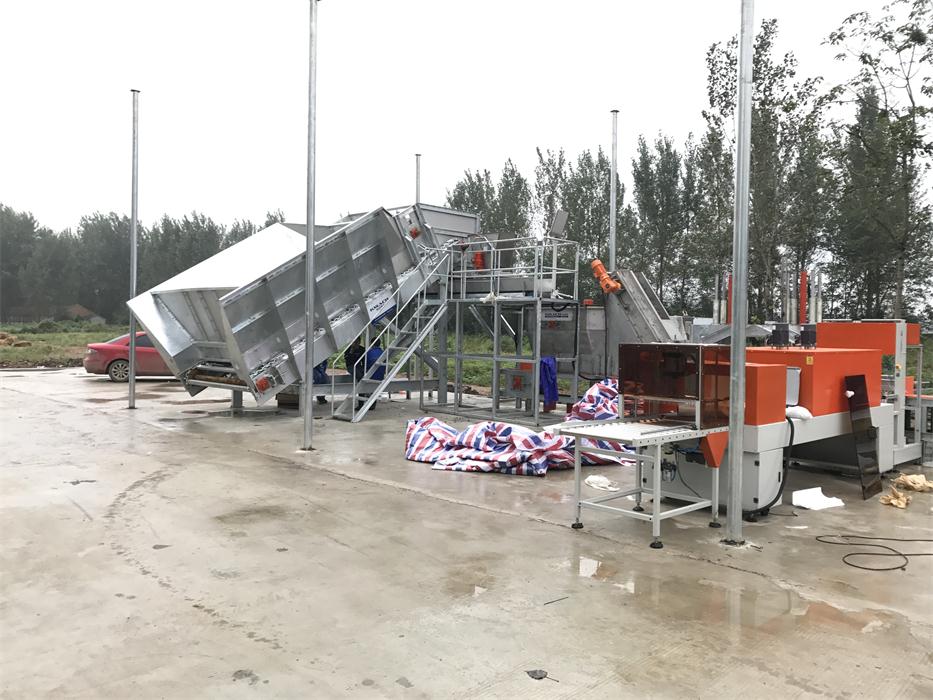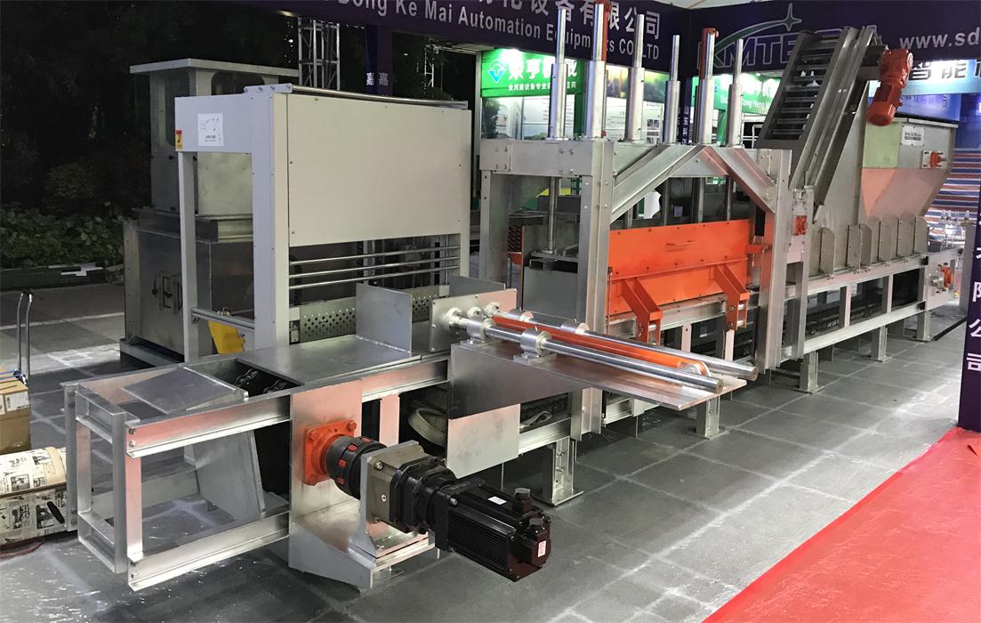 P23-24 Compost Blocking Line.jpgAccording to the special characteristics of phase II compost, KMACH has designed and manufactured the durable and efficient blocking line, which mainly consists of one dosing hopper, one horizontal belt conveyor, one spawning unit, one blocking and hydraulically pressing system and one shrink-wrap packaging system. The blocking process can be adjusted at 3 speeds and maximum capacity can reach 600 blocks per hour. The block size is 400*570mm with thickness adjustable from 180 to 250mm, and weight adjustable from 20 to 27kgs.