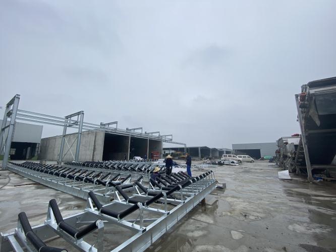 P25-26 Bunker&Tunnel Conveyor System.jpgThe conveyor systems in Phase I bunker area include cascade conveyors,central conveyor,inclined conveyor and discharge conveyor,etc. Combining the specific requirements of our farm clients with the professional know-hows and experiences, KMACH team design the convenient and efficient conveyor systems to coordinate with mixing hopper and/or mixing line for mixing purpose, and coordinate with cassette filler and/or top filler to fill the bunkers, and then finally transport the qualified Phase I compost to tunnel area for further processing.