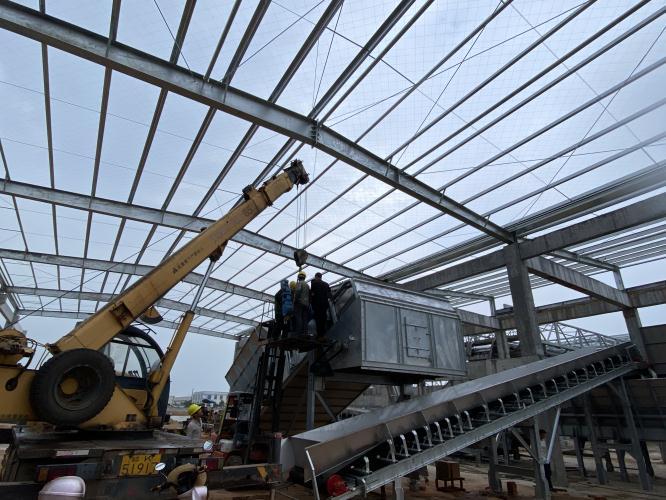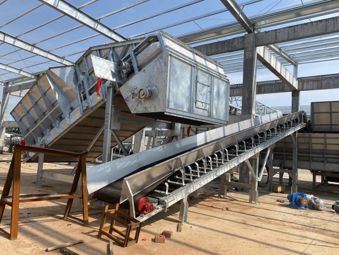 The dry chicken litter material is loaded into the hopper for mixing and breaking to be finer, and then dropped onto the inclined conveyor and transferred to the mixing line for a more even mixing with the straw material. Such handling will enhance the mixture quality and consequently will make the compost more homogeneous. The KMACH designed and manufactured hopper and conveyor system is logical and efficient, and strongly wearable and corrosion proof with hot-galvanized mainframe and stainless steel enclosure.