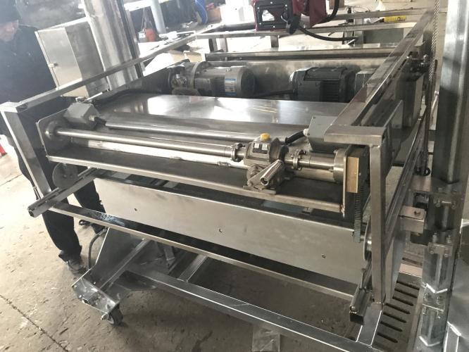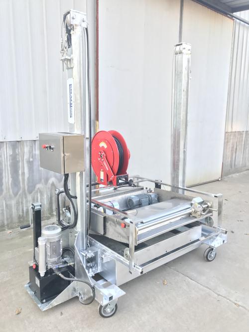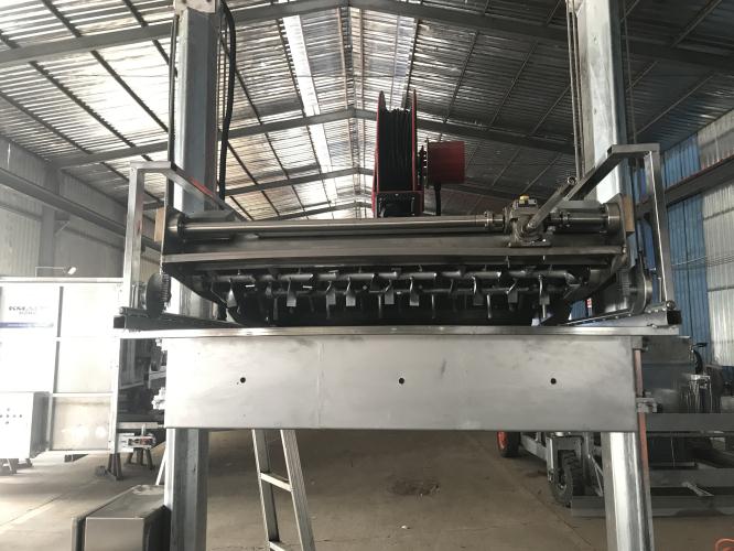 P34 Ruffling Machine.jpgThe ruffling machine consists of one ruffling unit and one lifting platform. During ruffling operation,the platform will lift and move the ruffling unit to each bed. The ruffling unit mainly includes one or two ruffling axles and one compressing roller.The ruffling unit drives forward and ruffle the casing soil layer and the top of the compost layer, and then drive backward to level and finally press the surface with the compressing roller.