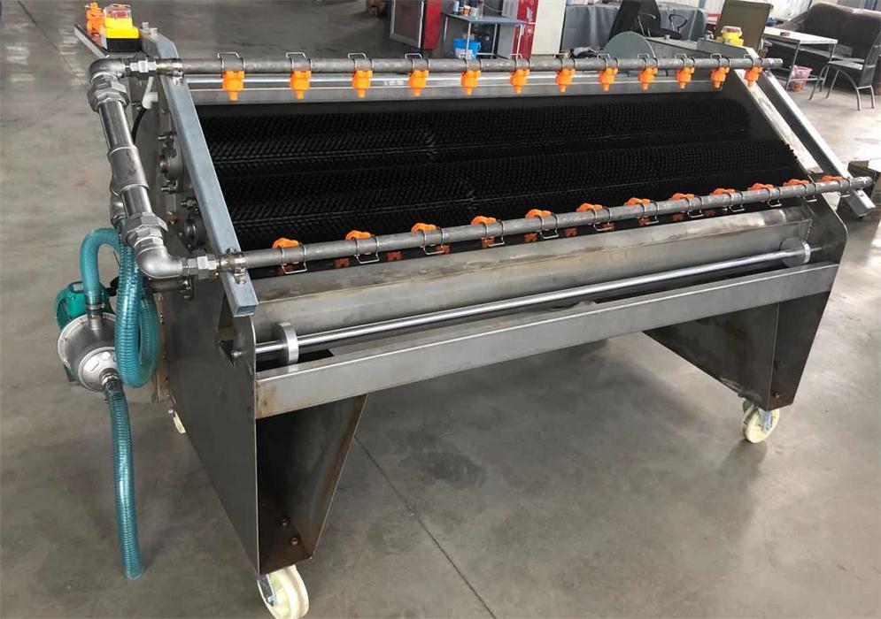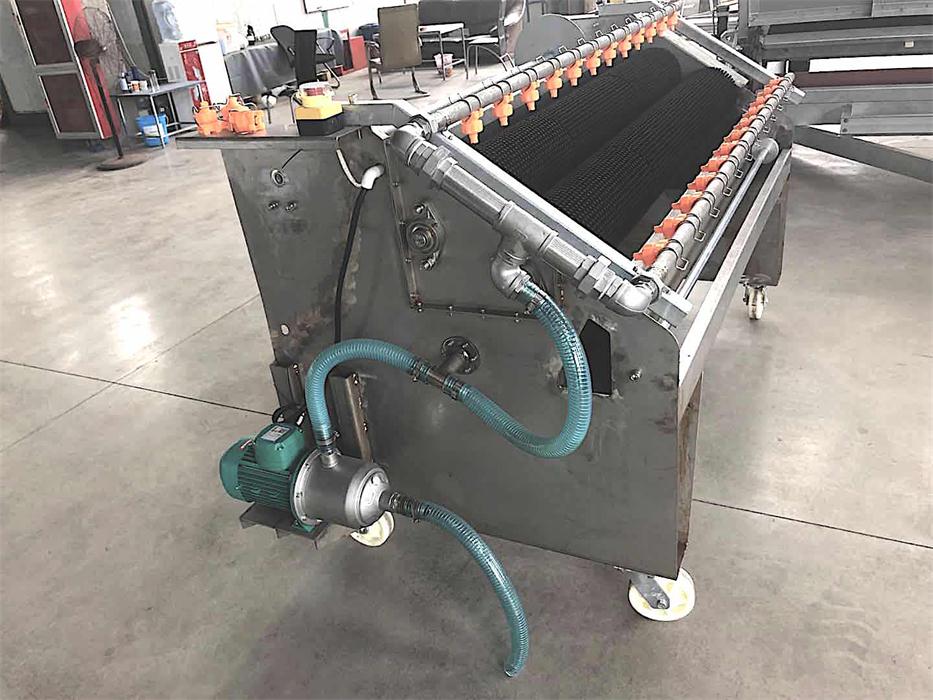 P37 Net Washer.jpgThe purpose is to wash and clean the dirty growing nets after emptying the growing rooms.The advantage of applying KMACH washing machine is cleaning the nets much more thoroughly and quickly than washing manually. The machine is built out of stainless structure, logically equipped with one net-winding mechanism, two brushing rollers and one high-pressure washing unit with a pump and two groups of sprayers.